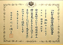 環境省『かおり風景百選』認定書を無償で進呈します。(A2版) 420x594>>拡大サイズ
